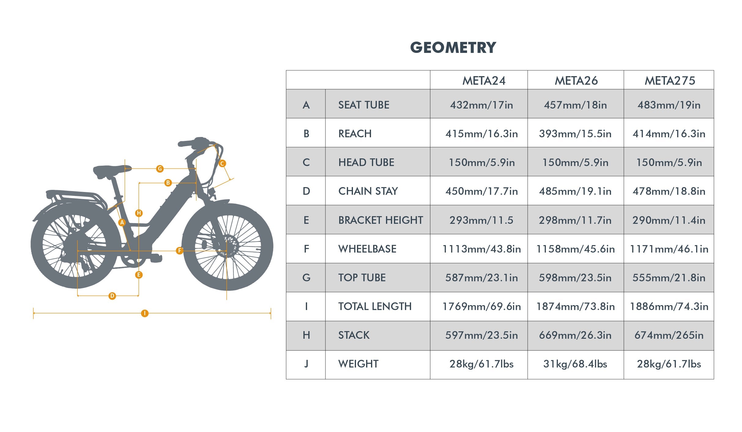 Whether you're commuting to work, running errands, getting exercise, or exploring new trails, the Meta handles it all. The suspension fork smooths out rough roads, the wide tires provide stability, and the powerful motor conquers hills with ease.
