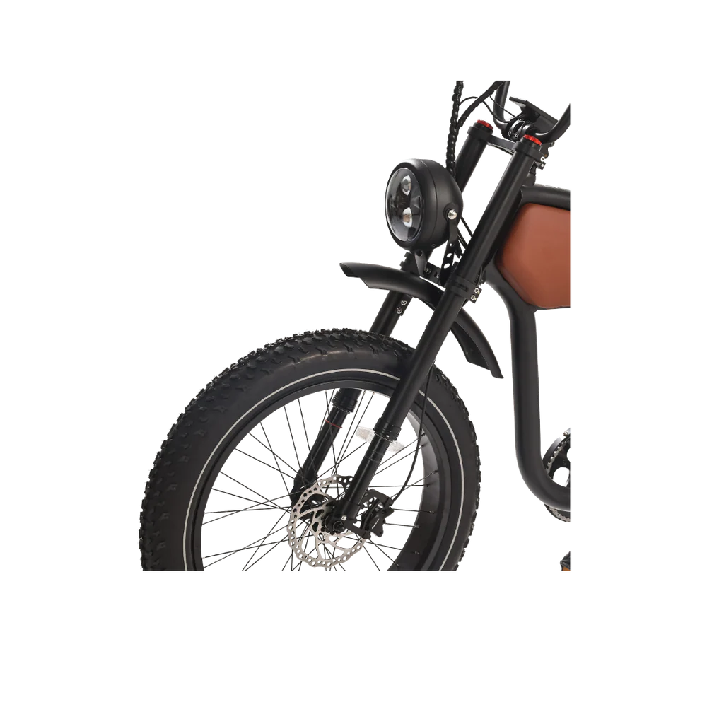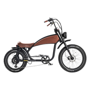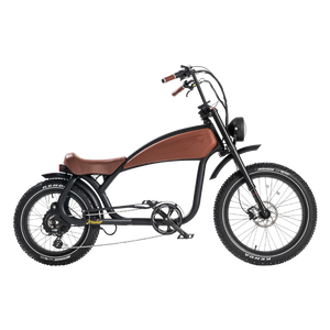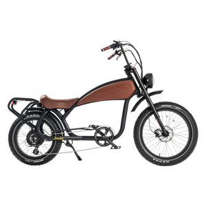 The REVI Prowler isn't just an electric bike—it's a statement. With its iconic cafe racer styling, distinctive ape hanger handlebars, and aggressive stance, this vintage-inspired beast delivers 1000W of raw power wrapped in timeless design. Whether you're cruising city streets or carving through trails, the Prowler combines nostalgic aesthetics with cutting-edge electric performance that turns heads and dominates roads.